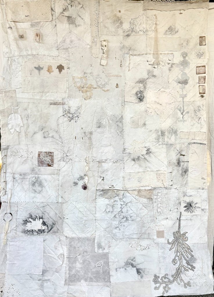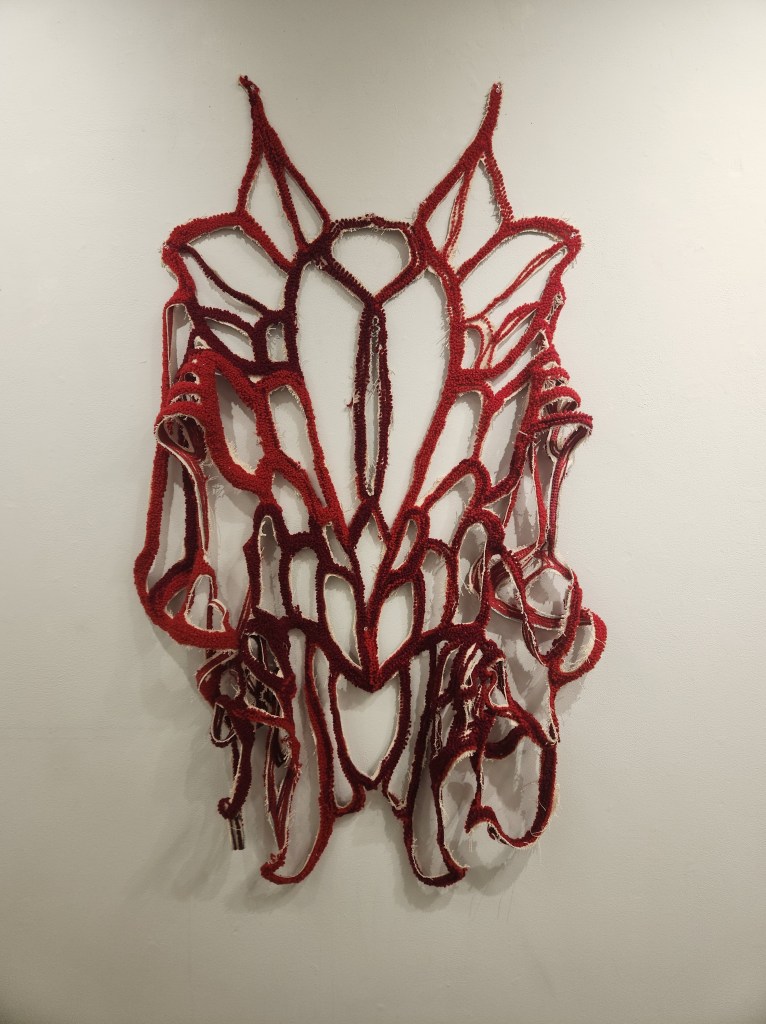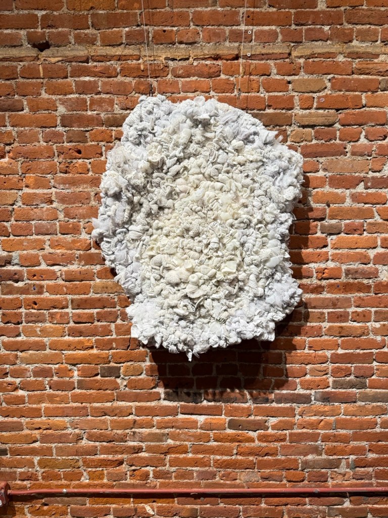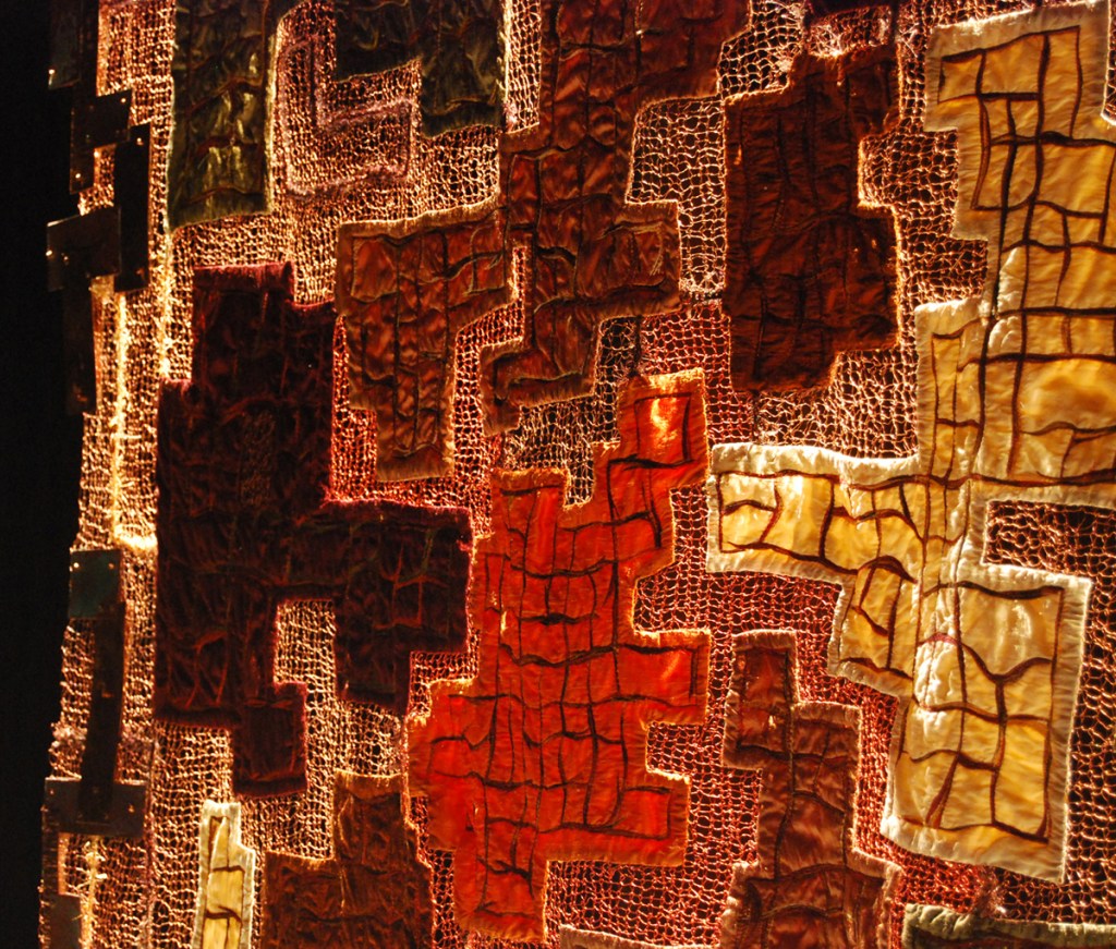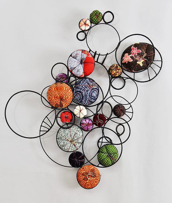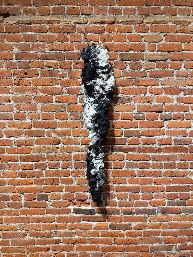 I have chosen the pieces for this show because they continue this universal language. Each of these artists uses thread, yarn, fabric and a variety of textiles in interesting and meaningful ways. Whether they are trying to or not, they are following in the footsteps of giants like Anni Albers and Sheila Hicks.