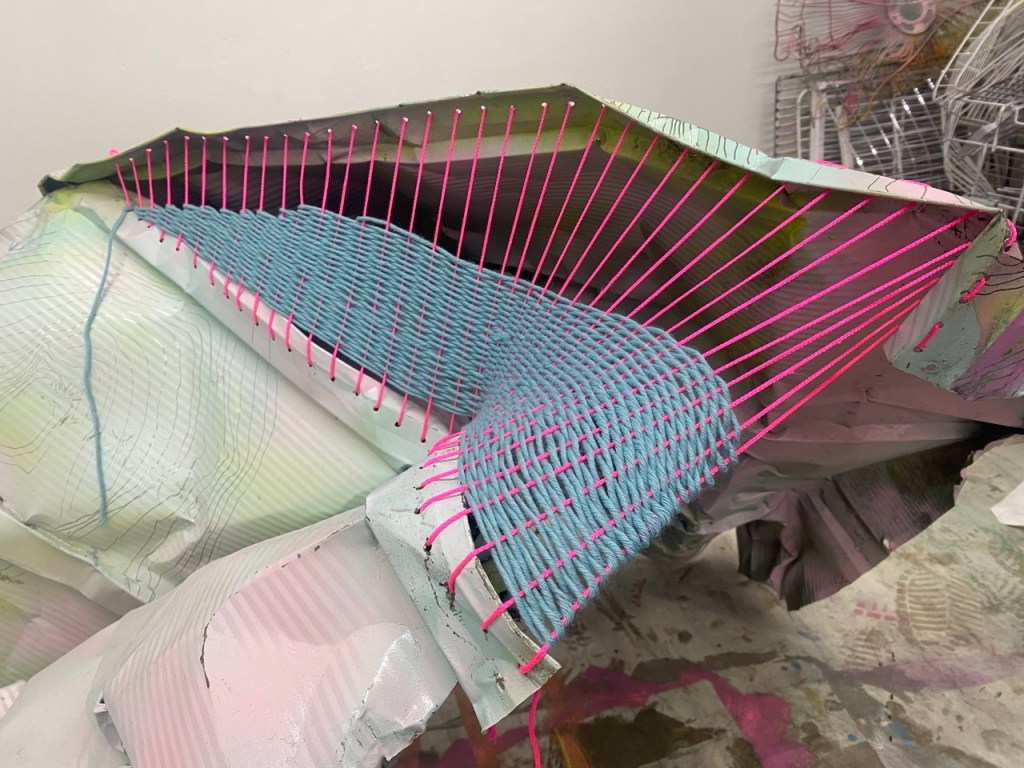 Sheila Hicks is my inspiration for this exhibit. She has been working with threads and fibers her entire life, and has elevated textile-based works (along with others, many Bauhaus affiliated) to high art. Educated at Yale where she studied under Josef Albers, she met his weaving artist wife, Anni Albers, and her eyes widened, especially regarding form. Her career exploded and she has never looked back. She currently has a Solo Exhibit in Japan and has shown with countless galleries and museums. She lives in France, is 95 years of age, and continues her textile-based work as we speak.